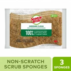 Scotch-BriteĀ® Greener Clean Non-Scratch Scrub Sponge, Tan, 3/Pack (97033)