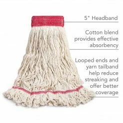 Coastwide Professionalâ„¢ Looped-End Wet Mop Head, Large, Cotton, 5″ Headband, White (CW57748)