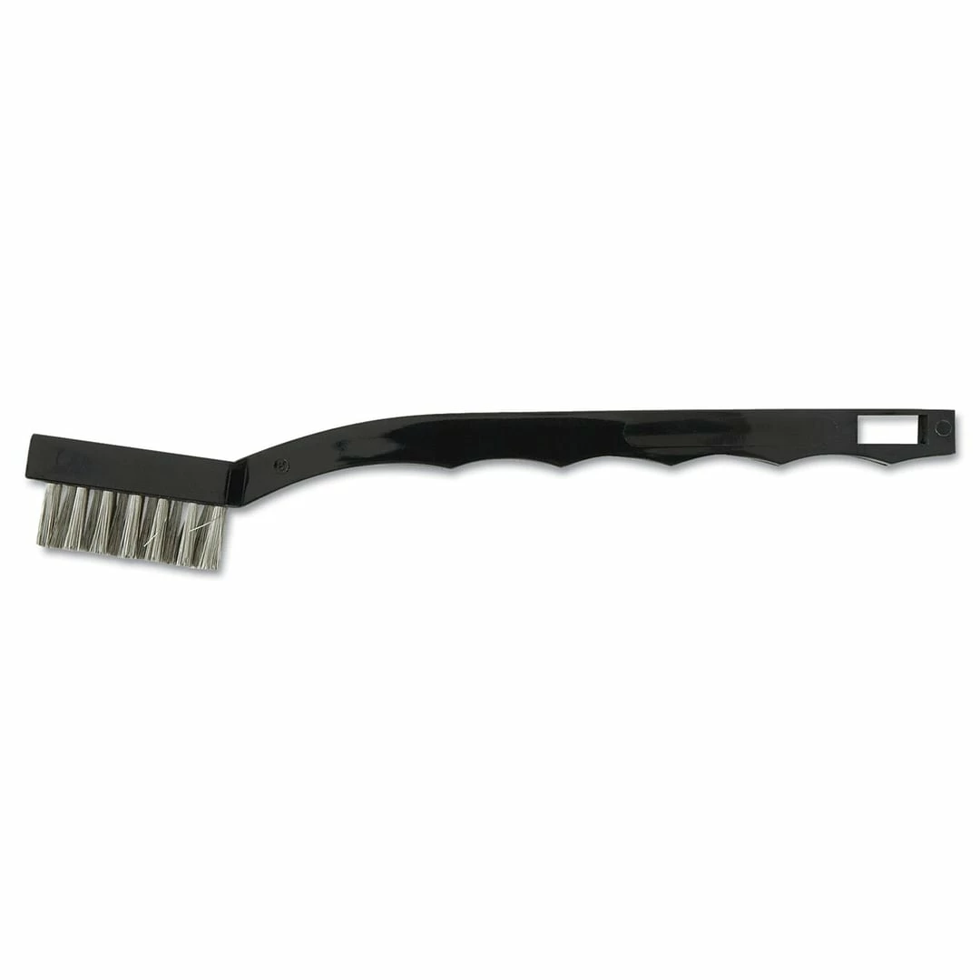 The Anchor Brand SS Bristle Utility Brush features 3 x 7 bristle rows that make cleaning a breeze. It features a plastic curved handle that offers good grip. With its sturdy design, this metal utility brush removes corrosion and oxidation from metal surfaces. faces.