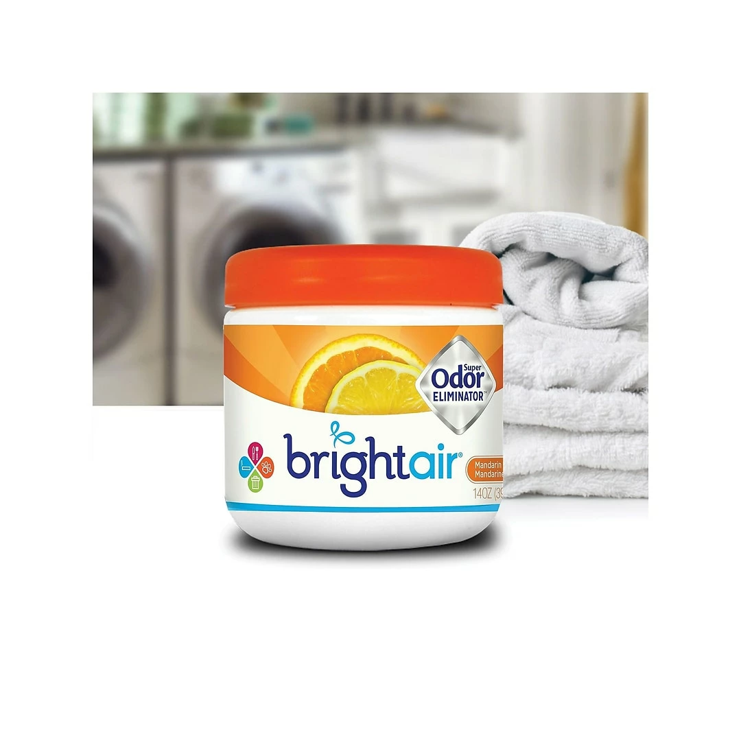 Invite guests to the home or office with confidence when you use this clean-smelling natural air freshener. This air freshener uses plant-based gel with a blend of essential oils for a gentle citrus scent. Effectively eliminating tough odors for up to 60 days, this air freshener offers long-lasting performance. Formulated without potentially harmful ingredients like phthalates, triclosan and BHT, this Bright Air citrus air freshener is a healthy option for keeping spaces smelling clean. Bright Air Super Odor Eliminator Air freshener with mandarin orange and fresh lemon scent comes in a 14 oz jar. Air freshener infused with natural oils is used to remove stubborn odor in home/office and it lasts up to 60 days.