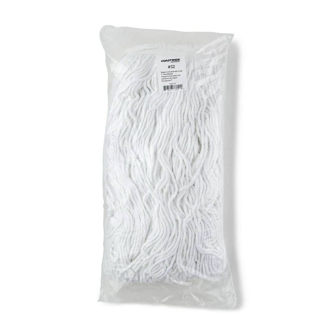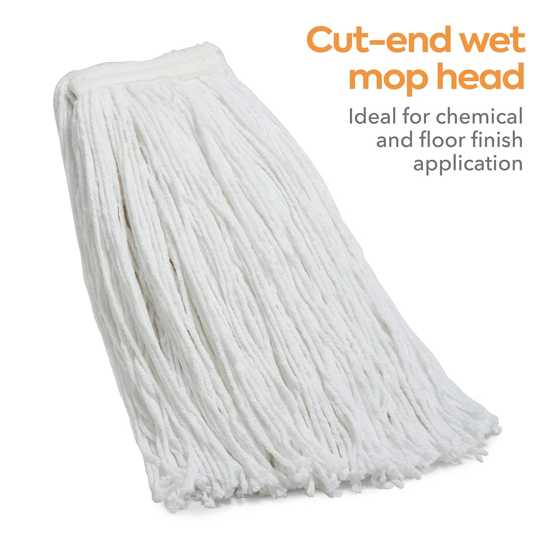 Manage daily light-duty cleaning tasks with this white wet mop head. The non-launderable construction provides one-cycle use, while the cut-end design is a cost-effective option for everyday general cleaning. Made of highly absorbent cotton material, this Coastwide Professional cut-end white wet mop head soaks up heavy spills, and the 1-inch headband makes it ideal for use with side gate handles.