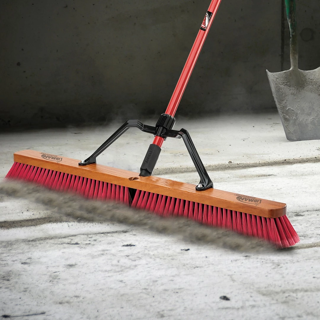 Heavy-Duty Push Broom is great for all surfaces except for very rough outdoor surfaces