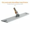 Dust Pan intended to for sweeping large amounts of debris in a mobile environment where the user doesn’t have to bend over to hold the pan