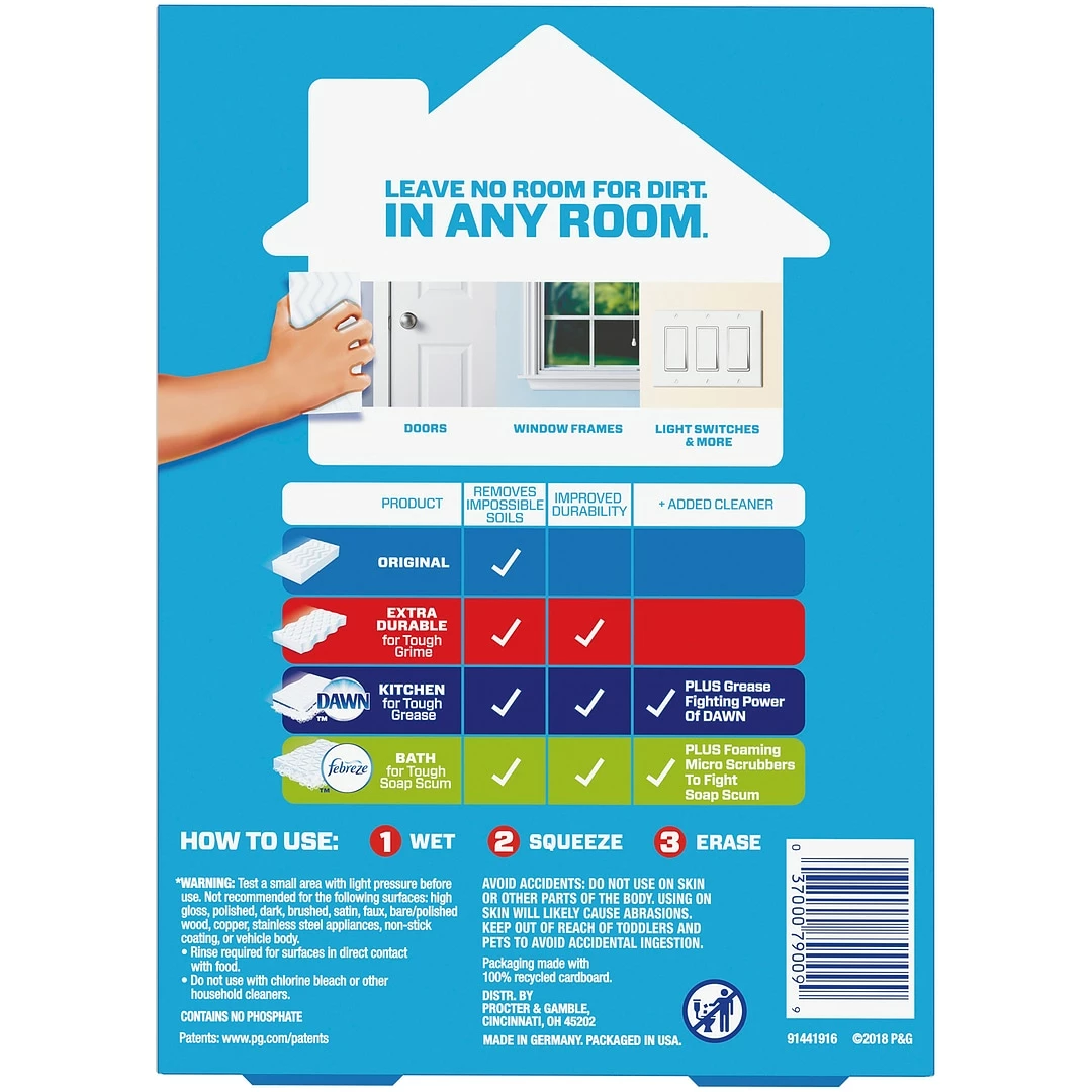 Mr. Clean Magic Eraser Original scrubber is 2X Stronger* with DURAFOAM. Micro-scrubbers reach into the surface grooves, lifting away built up dirt and grime with water alone! Use it all around the house as a multi surface cleaner, wall cleaner, bathtub cleaner, oven door cleaner, or for erasing marks on light switches, doors and more! *Cleaning performance vs. the leading all-purpose bleach spray