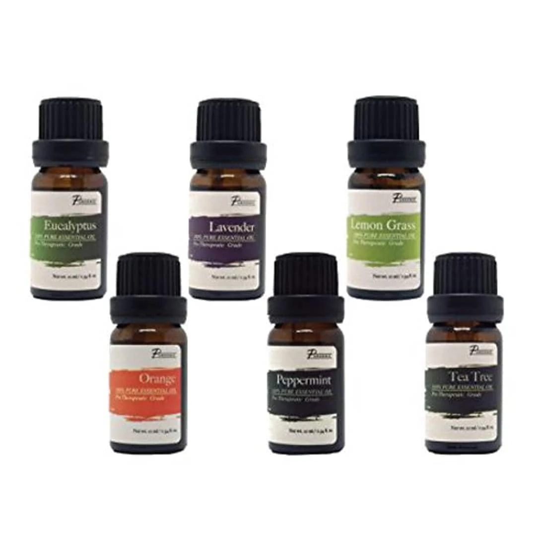 Includes 10 ml eucalyptus, lavender, lemon grass orange, peppermint and tea tree