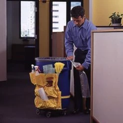 Rubbermaid Brute yellow nylon caddy bags turn your Rubbermaid Brute wheeled trash cans into mobile cleaning carts. A total of 12 pockets have elastic bands to custom-fit bottles, cans, tools, cleaning utensils, gloves and paper towel rolls so your maintenance staff can move quickly and efficiently from one area to the next. This system allows for quick clean-ups on the factory floor or overnight cleaning from one end of the building to the other depending on your needs.