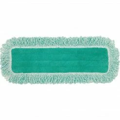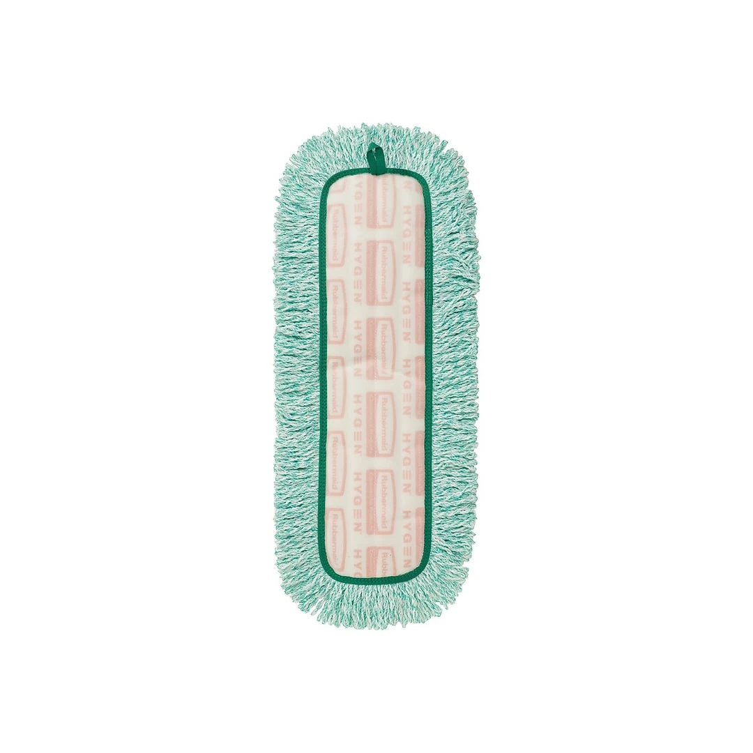 Provide greater surface area contact to speed cleaning in open areas with this dust mop pad. Dense electrostatic microfiber on this mop pad attracts dust and dirt while the looped fringe tackles larger debris. The double finish edges on this dust mop retain their shape through multiple washes for a quality clean every time. The durable construction of this Rubbermaid HYGEN mop pad allows it to be laundered up to 500 times.