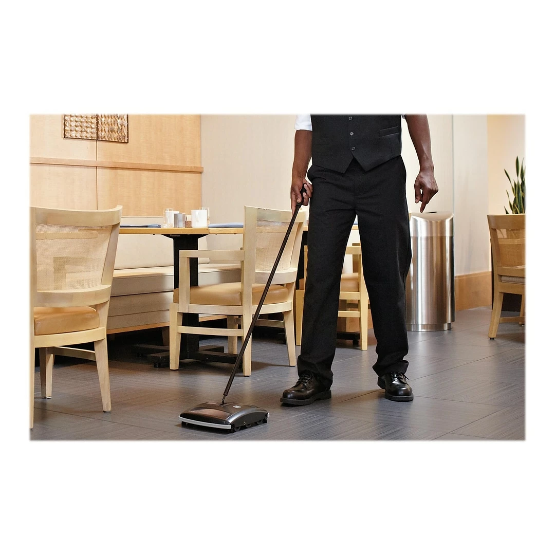 Clean hard floors and low-pile carpets quickly and easily with this mechanical sweeper. The galvanized steel and ABS plastic construction is durable for everyday use, and the low-profile design fits under furniture and in corners to clean hard-to-reach places. This Rubbermaid mechanical floor sweeper has a 6.5-inch-wide coverage path and an easy-open debris pan for efficient cleaning and simple disposal.