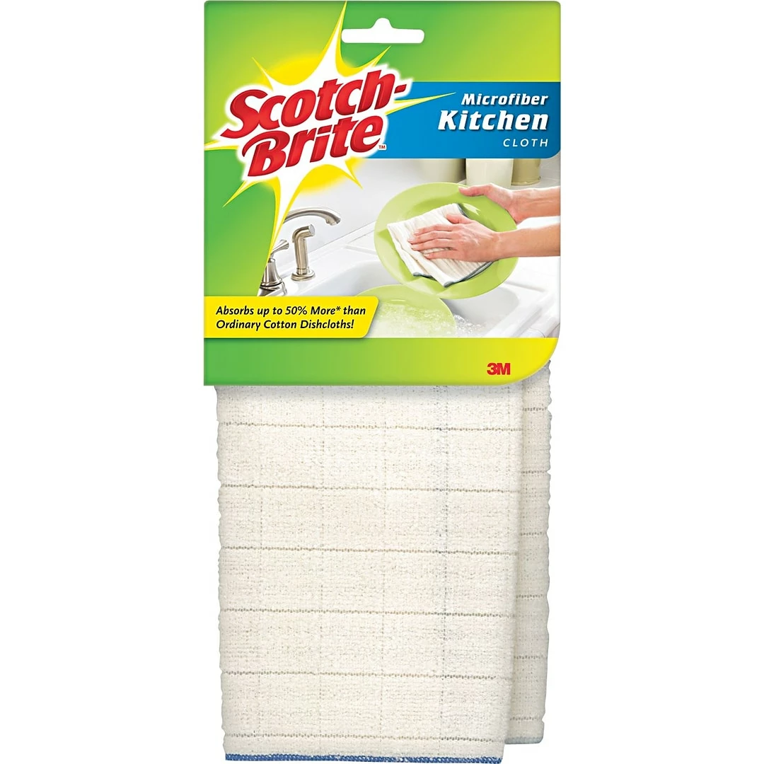 Scotch-Brite™ Kitchen cleaning cloth in white color is made of microfiber and is perfect for use on ceramic/chrome/copper/porcelain/stainless steel. Kitchen cloth has clean/quick-drying attribute and is re-usable, sold as 2 per pack.