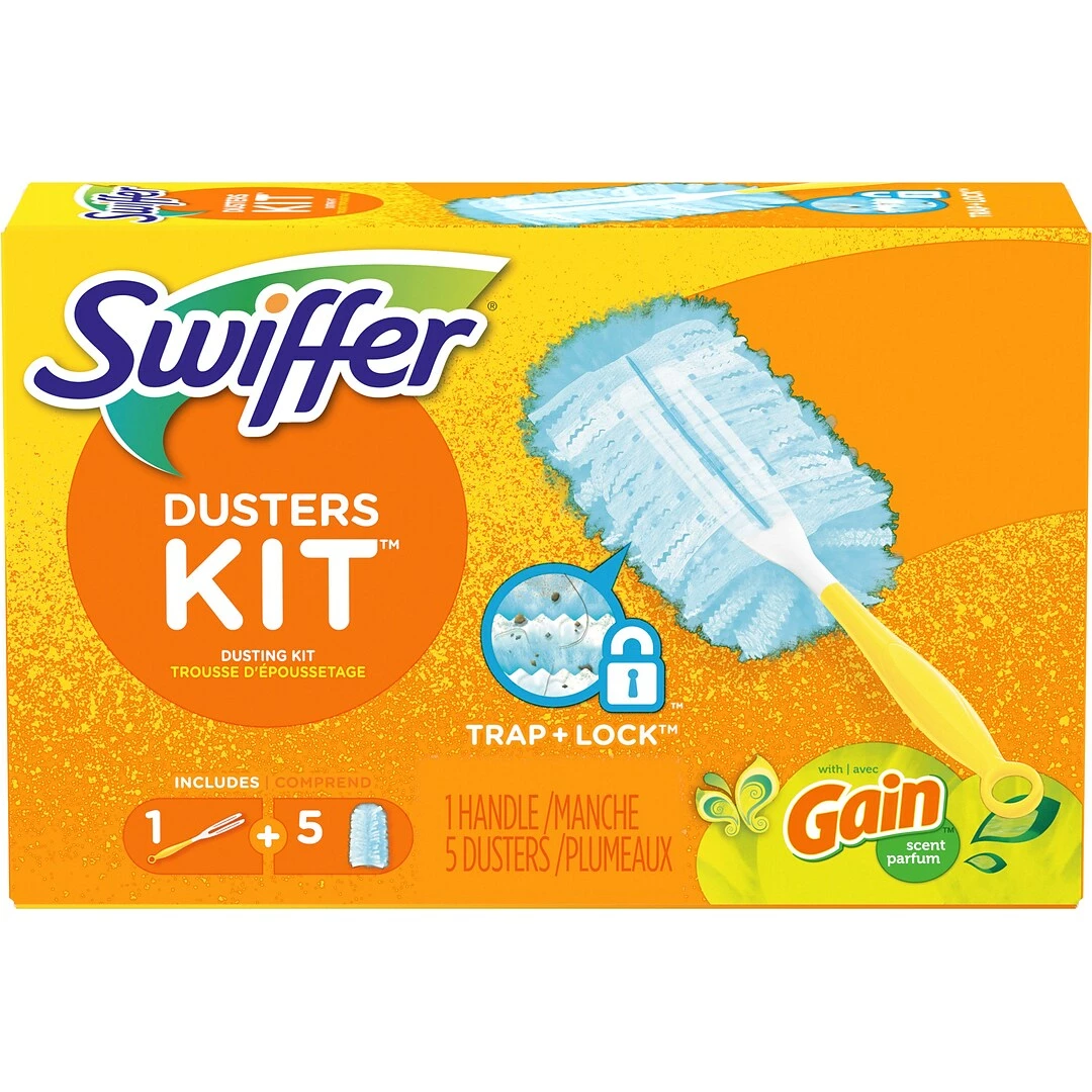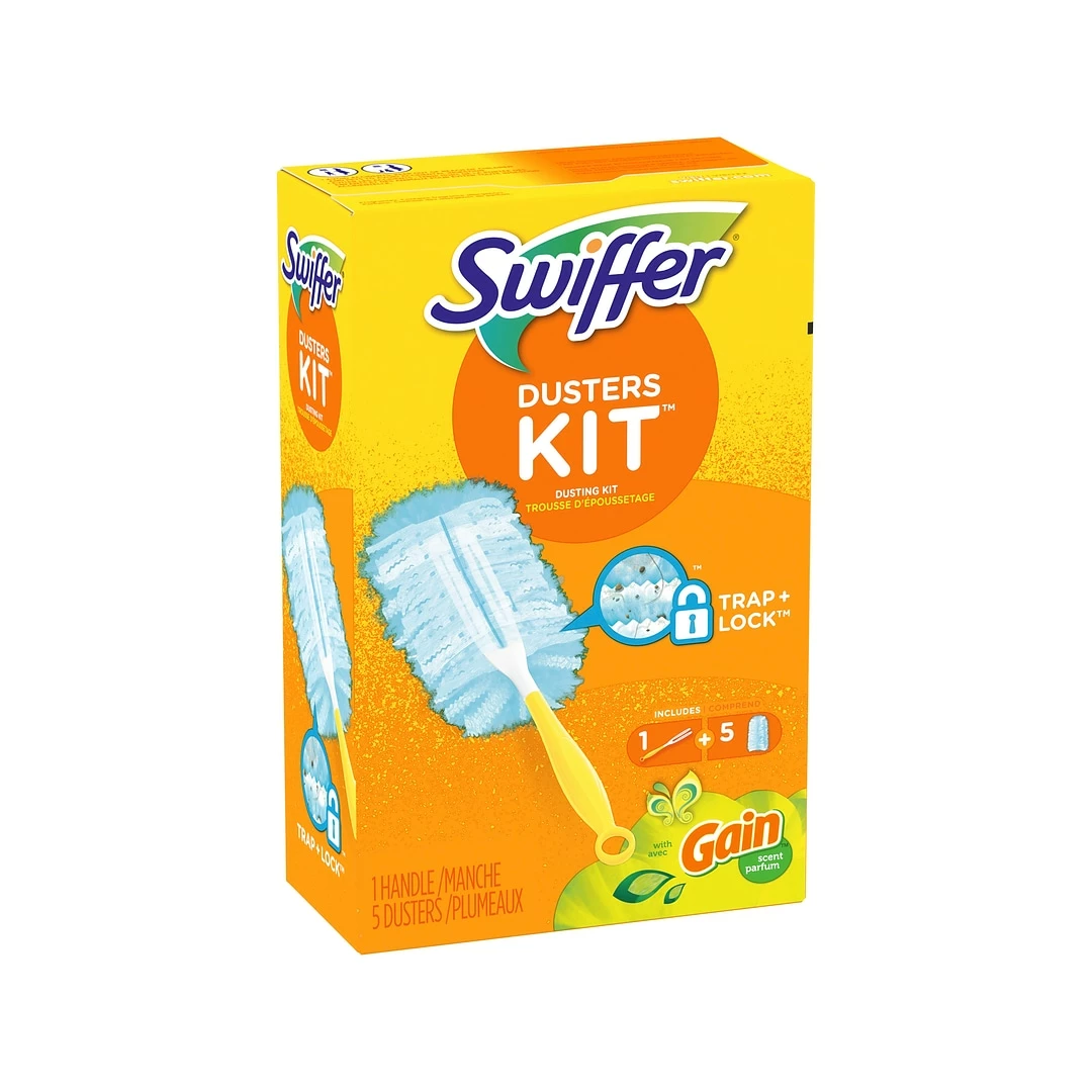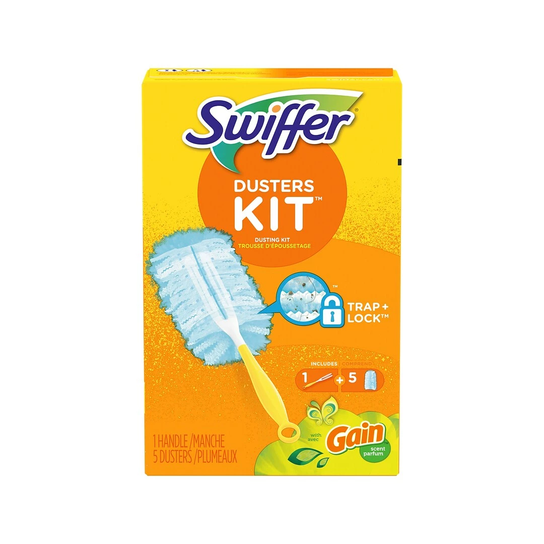 The Swiffer Dusters traps and locks dust and allergens. Features specially coated fibers that grab onto dust and don’t let it go. This duster is uniquely designed to neutralize dust from even the tight spaces in your home with the TRAP + LOCK system. Swiffer Dusters Kit includes one handle and five Swiffer Dusters.