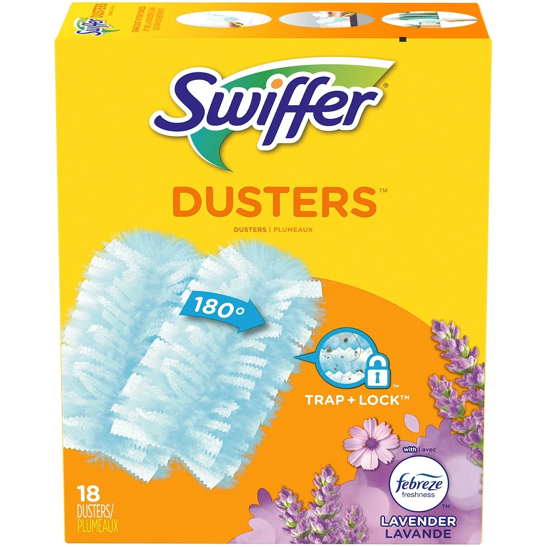 Swiffer Dusters TRAP + LOCK dust & allergens*. Made with specially coated fibers that grab onto dust & don’t let go. They are uniquely designed to Trap + Lock dust from even the tight spaces in your home. *common inanimate allergens from cat and dog dander & dust mite matter