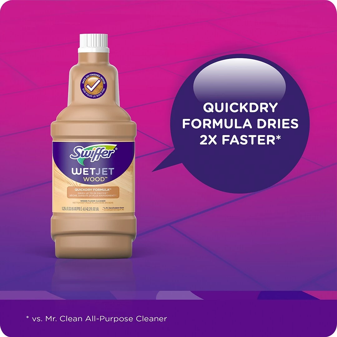 Dazzle the natural beauty of your floor with the pre-mixed cleaning solution that loosens dirt and greasy and leaves your home smelling clean. This Swiffer WetJet Wood Floor Cleaner Refill is a pre-mixed cleaning solution made especially for the Swiffer WetJet all-in-one power mop. It is safe, and fast drying formula dissolves dirt and tough, sticky messes to reveal the natural beauty of your floors.