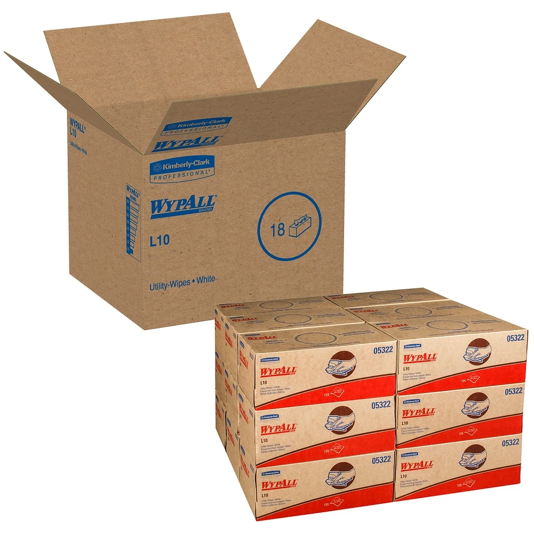 Keep a generous supply of strong cleaning cloths on hand with this package of 18 boxes containing 125 wipes each. The single-use utility wipes are ideal for cleaning up small spills, glass surfaces and final assembly dusting. These WypAll pop-up boxes allow for quick, convenient dispensing.