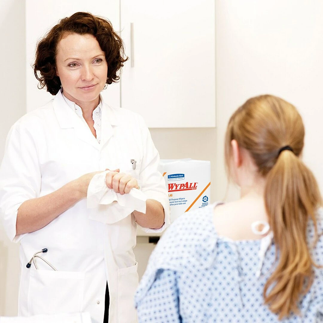 Effective Disposable Wipes Designed to absorb just about any kind of liquid–from lubricants to oils to water–WypAll L40 Disposable Cleaning and Drying Towels are a favorite of business owners, medical industry professionals and workers alike. They’re effective and efficient for soaking up messes, drying and cleaning. In fact, they’re popular cloth to use folded in patient bathing or unfolded in patient drying. Absorbent TechnologyL40 Wipers feature WypAll’s unique DRC (Double Re-Creped) base sheet technology. This unique process creates an absorbent sponge-like inner layer that absorbs liquids fast, with a soft, touchable outer layer.